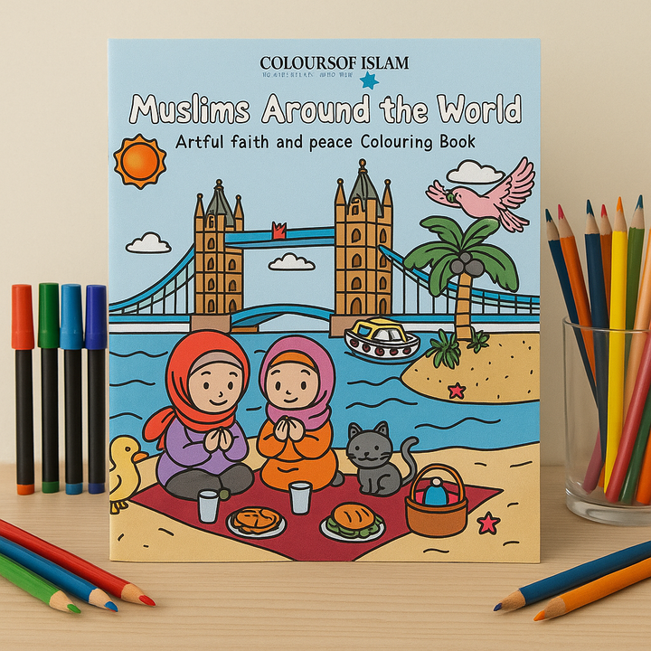 Explore the beauty of Muslim cultures across the globe with Muslims Around the World. This unique colouring 40-page book takes you on a journey through diverse countries, showcasing traditional clothing, landmarks, and daily life in various Muslim communities. Whether you’re looking to unwind or learn about the rich heritage of the Ummah, this book offers a creative and relaxing experience for all ages